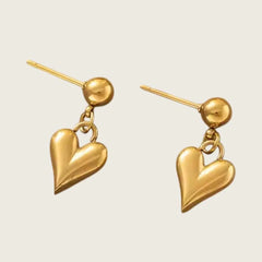 Gold-Plated Heart Drop Earrings, Dangle Style, Ball Post Studs